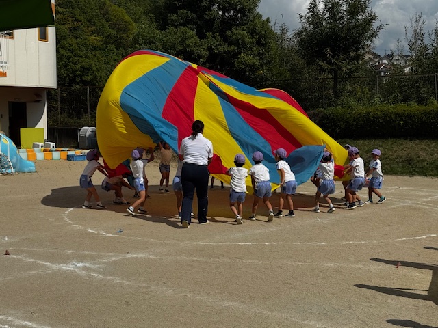 年長組ではマーチングの他、組体操やパラバルーン演技をがんばっています。
