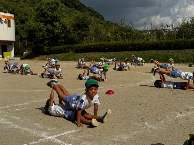 過ごしやすくなった秋晴れの園庭では運動会に向けてがんばっている子どもたちの姿がみられます。