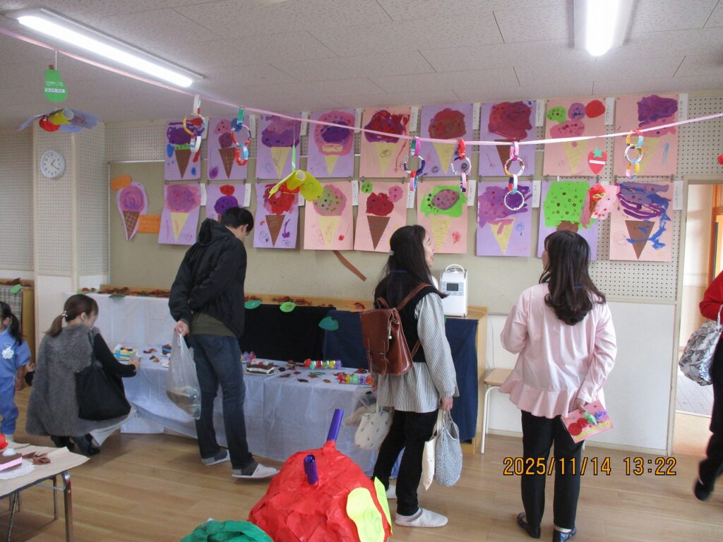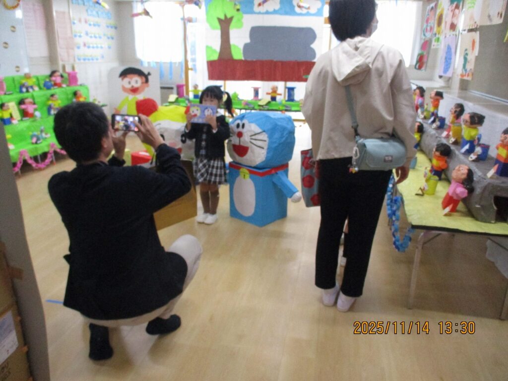 と家族の方に誉めてもらう子どもたち。とても自慢げです。