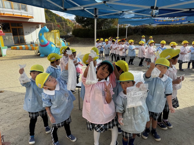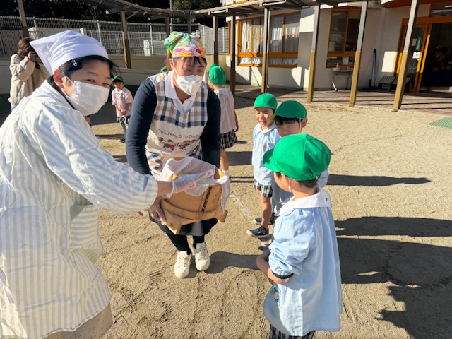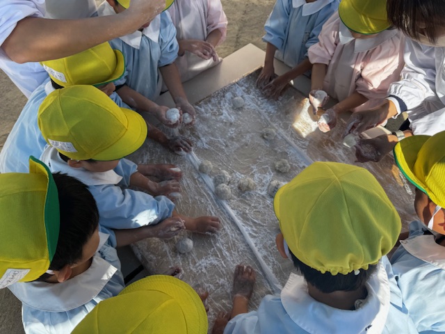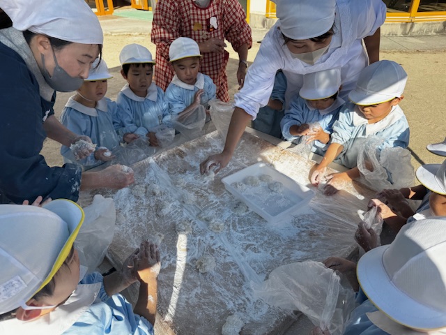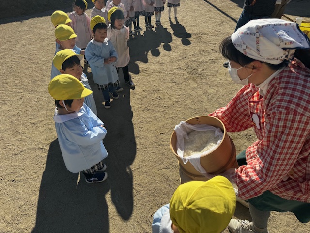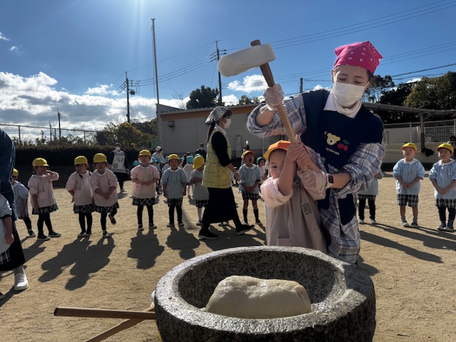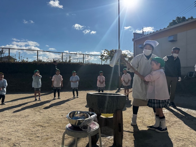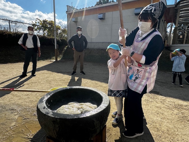 子どもたちがついて丸めたおもちを持ち帰りました。
